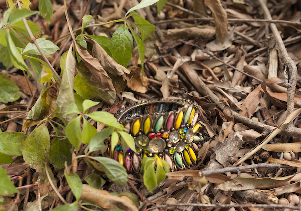 Near Brightleaf Square, an eerie stretch of West Pettigrew Street parallels an active rail line. Part of the “street” is gravel, and more closely resembles a cowpath. It then crosses Gregson, and curves past the remains of an old, brick house, its lot strewn with trash. Beneath some leaves, I find a woman’s bracelet.
