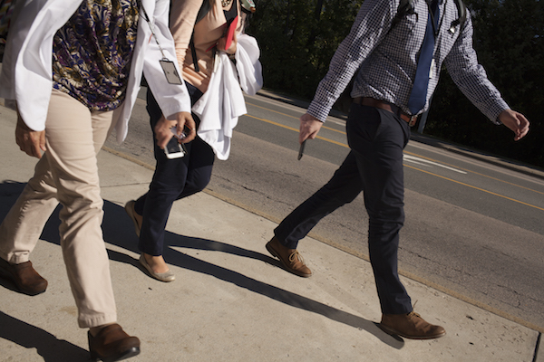Crest Park ballfield, with part of the medical center complex looming in the backgroundDoctors headed home after work, Erwin Road