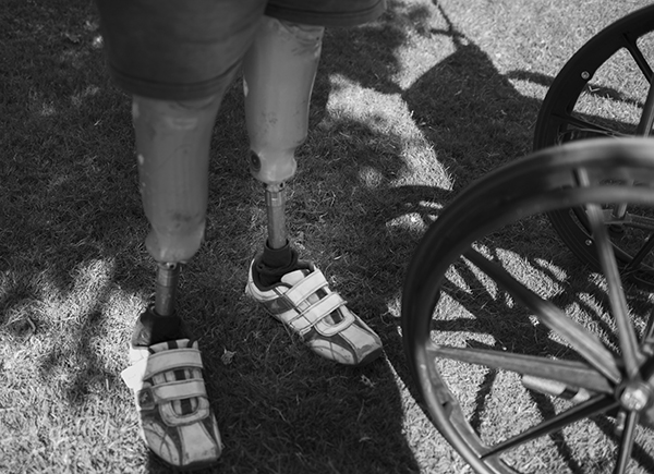 “Do you need some help?” I asked, only then noticing he had only prosthetic legs. He seemed unsteady, unwell, as if perhaps he should still be under a doctor’s care. His white medical bracelet read “Favio,” and listed his birthdate as 1960.