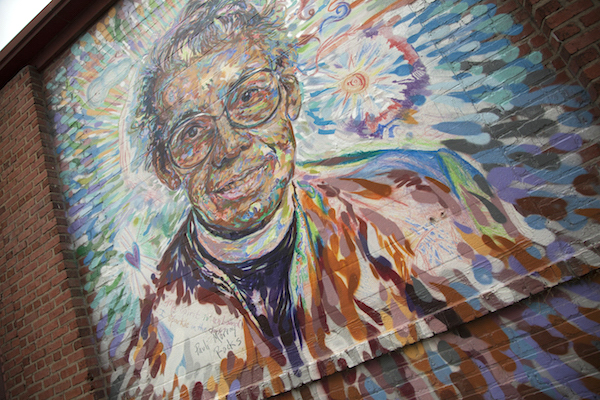 Pauli Murray mural on the side of an old warehouse on Buchanan Boulevard. The warehouse is now part of the Duke Transportation Center