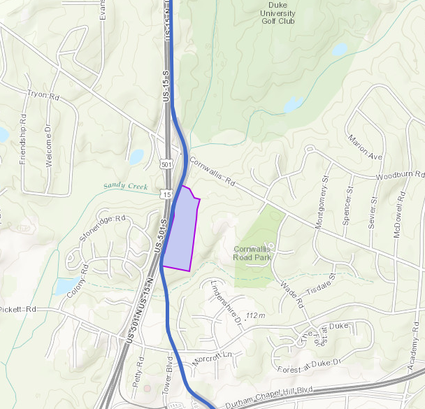 From here, the line cuts to Cornwallis Road, near the Jewish Community Center, the JCC Day School, Carter Charter School and Western Boulevard/U.S. 15-501. Here, GoTriangle has considered building the ROMF—rail operation maintenance facility—at a former Pepsi plant. It would require a rezoning of the land but with less bureaucracy than other sites.